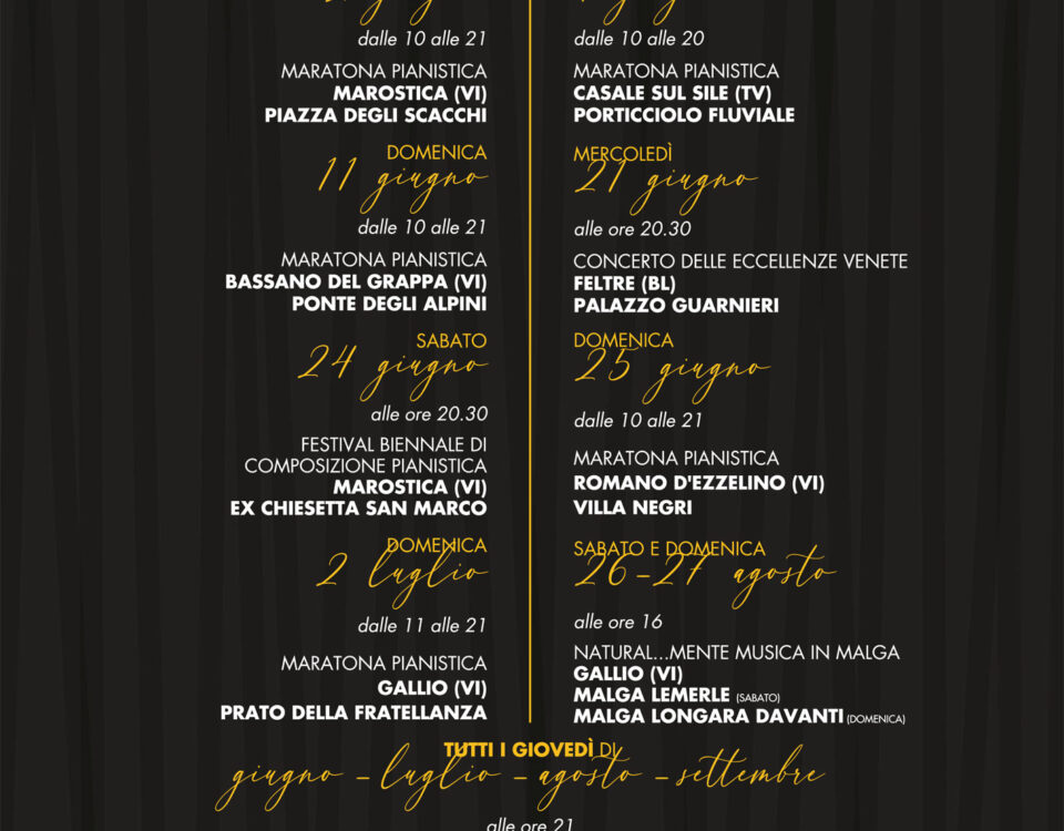 Gli allievi della Symphoniae suoneranno con il M° Luigi Ferro, in particolare: Domenica 11 giugno dalle ore 10 alle 21 sul Ponte degli Alpini a Bassano […]